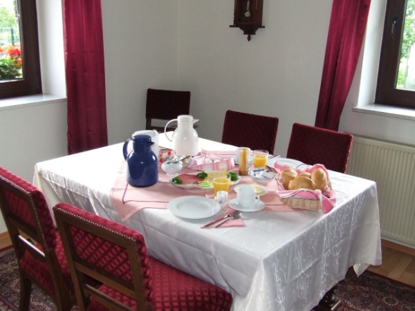Nach einer erholsamen Nacht in unseren Zimmern (14 qm) starten Sie mit einem reichhaltigen Frühstück in unserem gemütlich eingerichteten Aufenthaltsraum in Ihren Urlaubstag im Nationalpark Eifel.